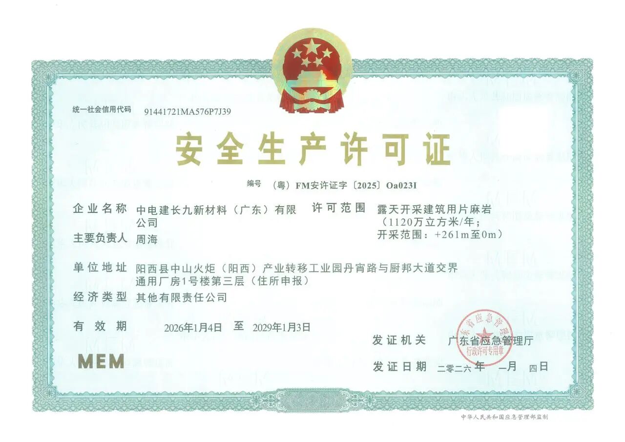近日,中電建廣東長(zhǎng)九公司正式取得安全生產(chǎn)許可證!標(biāo)志著公司安全生產(chǎn)標(biāo)準(zhǔn)化與合規(guī)化管理全面達(dá)標(biāo),具備了正式投產(chǎn)運(yùn)行的重要條件,為公司高質(zhì)量發(fā)展奠定了堅(jiān)實(shí)的安全基礎(chǔ)。