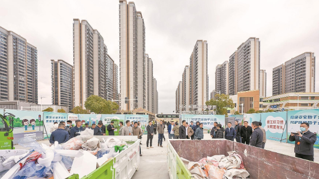 在陳埭鎮(zhèn),當(dāng)?shù)赝ㄟ^建設(shè)建筑垃圾規(guī)范化分揀中心、配備環(huán)保抑塵設(shè)施,有效應(yīng)對了因城市開發(fā)密集帶來的建筑垃圾治理壓力。在該鎮(zhèn)的御湖鏡小區(qū),與會(huì)人員看到小區(qū)設(shè)置了回收箱式建筑垃圾臨時(shí)交付點(diǎn),一旁墻面上張貼著《晉江市建筑垃圾處置設(shè)施公示牌》,設(shè)施名稱、經(jīng)營單位、責(zé)任單位、聯(lián)系電話、開放時(shí)間、消納種類等信息一目了然。據(jù)悉,在晉江市,所有小區(qū)、社區(qū)基本已設(shè)置中轉(zhuǎn)站、臨時(shí)堆放點(diǎn),并與專業(yè)企業(yè)簽訂處置協(xié)議,建立了完善的建筑垃圾管理臺賬,做到了建筑垃圾產(chǎn)生源頭、臨時(shí)堆放、運(yùn)輸、處置等環(huán)節(jié)均有管理臺賬可查,實(shí)現(xiàn)了建筑垃圾治理的全過程監(jiān)管。