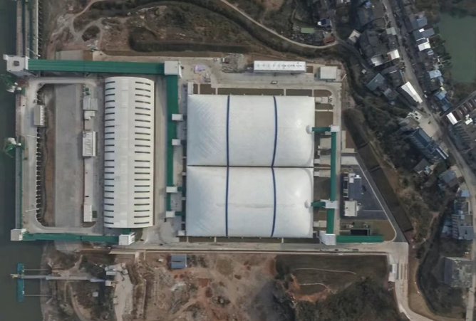 建設(shè)過程中,項目部秉持“精益求精、追求卓越”的工匠精神,統(tǒng)籌推進安全、質(zhì)量與進度管理,創(chuàng)新應(yīng)用多項綠色技術(shù)與高效管理措施。項目采用全封閉廊道運輸、粉塵抑制系統(tǒng)等先進環(huán)保工藝,實現(xiàn)砂石等散貨運輸全程清潔化作業(yè),有效踐行長江大保護戰(zhàn)略。氣膜倉貨棚采用無梁無柱設(shè)計,空間利用率提升30%以上,密閉結(jié)構(gòu)從源頭阻斷粉塵擴散。智能監(jiān)測系統(tǒng)實時調(diào)控作業(yè)環(huán)境指標(biāo),筑牢生態(tài)安全防線。
