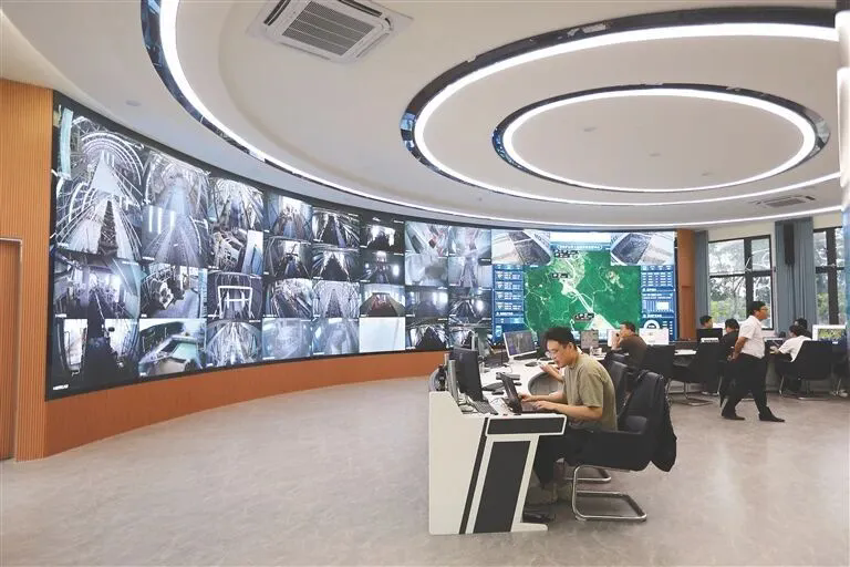走進(jìn)中控室,大屏幕上可見礦山的各類實(shí)時數(shù)據(jù)和模擬三維動畫。在這里,無人機(jī)高空巡檢、智能機(jī)器人長皮帶廊道巡檢,通過AI定時定期定路線,以視覺、紅外溫控、聲控等多種方式,加強(qiáng)生產(chǎn)線及廠區(qū)的安全隱患排查,并實(shí)時在中控室顯示情況,故障識別準(zhǔn)確率達(dá)99%。
