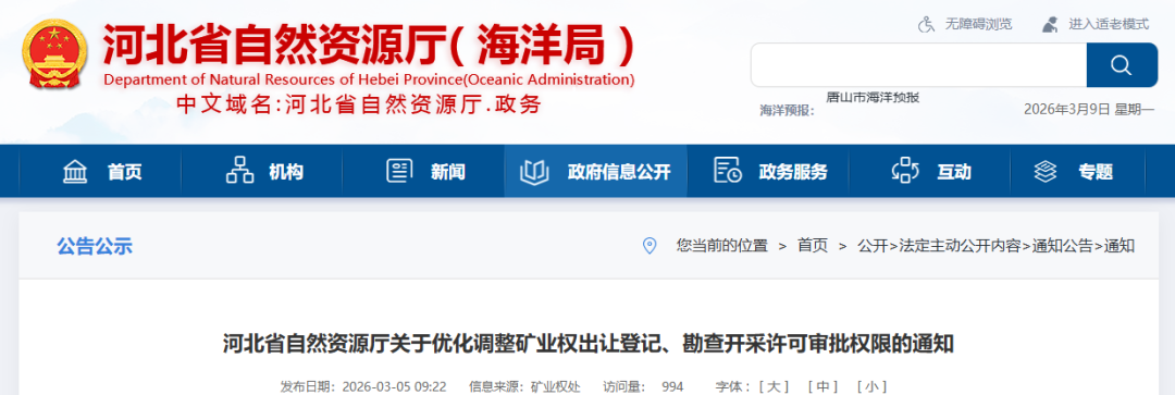 近日,河北省自然資源廳印發(fā)《關(guān)于優(yōu)化調(diào)整礦業(yè)權(quán)出讓登記、勘查開(kāi)采許可審批權(quán)限的通知》(冀自然資規(guī)〔2026〕1 號(hào)),針對(duì)非金屬露天礦山明確了審批權(quán)限劃分、出讓計(jì)劃管控、開(kāi)采方式規(guī)范等一系列新規(guī),旨在推動(dòng)礦產(chǎn)資源科學(xué)管理與礦業(yè)高質(zhì)量發(fā)展。砂石骨料相關(guān)的建筑用砂、建筑石料用灰?guī)r、砂巖等礦產(chǎn)作為非金屬露天礦山的重要類別,將同步適用新規(guī)要求,新規(guī)將于2026年5月1日起正式實(shí)施。