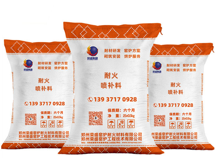 主要解決大型高爐鐵溝使用過程的局部快速熱態修補,溫度為100—1450℃,有人研究用磷酸二氫鋁結合的Al2O3—SiC—C質噴補料具有良好的性能。同時選擇中擋鎂砂為固化劑(1—2%),與磷酸二氫鋁在噴槍口噴出混合噴到修補面上不流淌,可快速固化燒結。當噴補層厚度180—250mm,噴完10min即可出鐵,連續使用12d,過鐵總量4.8萬t,噴補層還有少量殘襯。一般用水泥結合的同類噴涂料使用5d左右,過鐵量比較理想,熱噴補有濕式和半干法兩種。