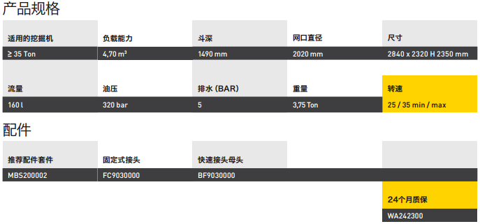 現(xiàn)有較大的篩分鏟斗,行業(yè)先進。可用于35噸以上的挖掘機。