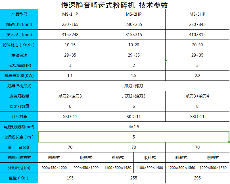 7、慢速和隔音料箱,可有效降低粉碎時(shí)所產(chǎn)生的噪音。