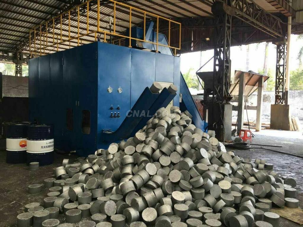(鋼刨花、廢鋼、廢鋁、廢銅、廢不銹鋼以及報廢汽車廢料等)擠壓成長方體、圓柱體、八角形體等各種形狀的合格爐料,以降低運輸、冶煉成本,還可提高投爐速度圣博400噸全自動壓塊機(jī),江蘇鋁屑壓餅機(jī),銅屑壓塊機(jī)參數(shù),