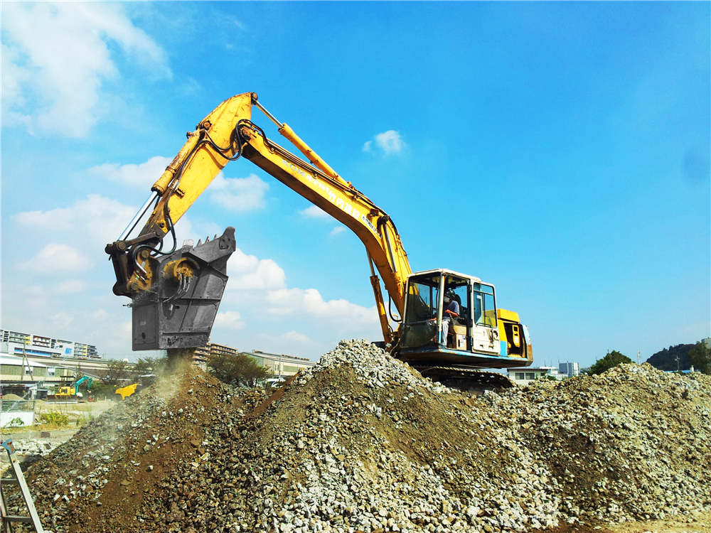顎式破碎斗的推出創(chuàng)新了以往傳統(tǒng)破碎機的繁瑣結(jié)構(gòu)、地基的建設(shè),節(jié)省了大量的時間。顎式破碎斗可直接連接挖掘機小臂,施工現(xiàn)場抓取石材進行破碎作業(yè),直接達到成品粒度;顎式破碎斗特別適合碎石工地,可快速破碎礦山石、預(yù)制板及混凝土鋼梁,迅速分離混凝土、鋼筋等建筑垃圾,一舉多得。顎式破碎斗從各個方面來講都比較成熟了,所以使用起來比較省心。而傳統(tǒng)的碎石機一旦固定下來想再次挪動場地需要花費大量的人力、財力,甚至影響生產(chǎn)。