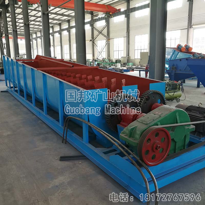槽式洗礦機(jī)廣泛用于各種易洗和難洗礦石和礦砂的清洗。礦石中含泥在20%以上則對碎礦機(jī)及溜槽產(chǎn)生堵塞,槽式洗礦機(jī)可使含泥在20%以上的礦石在洗礦機(jī)中螺旋攪拌、擦洗達(dá)到礦石與泥分離的目的,洗凈后的礦石從排料口排出,泥水從尾礦端排出。該設(shè)備與圓筒洗礦機(jī)配合,對處理難洗礦石是目前比較有效的洗礦設(shè)備。