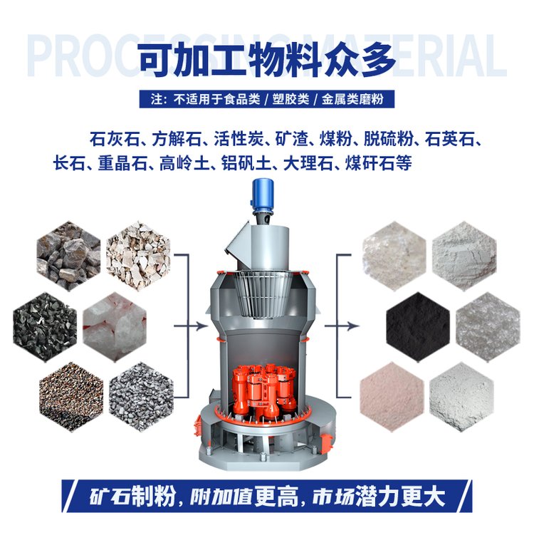 適用范圍:石灰石、方解石、大理石、重鈣、高嶺土、重晶石、膨潤土、葉臘石等非金屬礦產(chǎn)品的超細(xì)粉磨加工,可為造紙、涂料、塑料、橡膠、顏料、油墨、PVC等行業(yè)提供高品質(zhì)的填料和添加劑