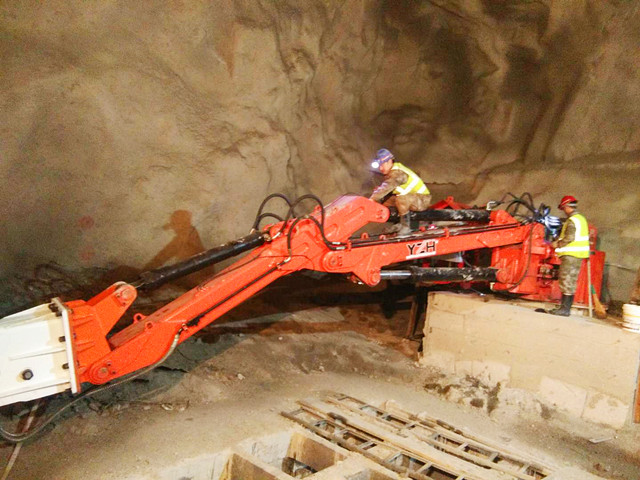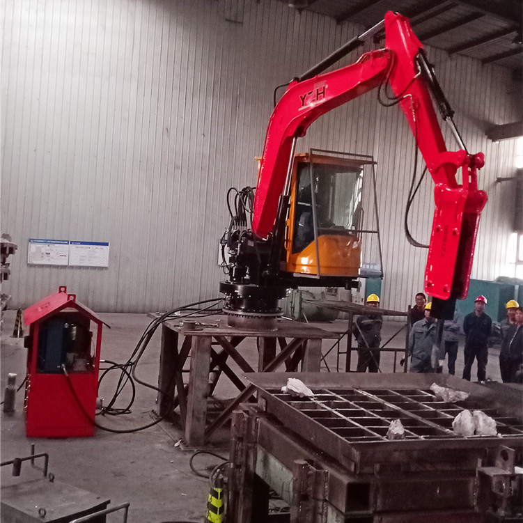 工業(yè)重型機械手主要由4個大部分組成:液壓破碎錘(破碎巖石)、大小臂作業(yè)系統(tǒng)(斗桿)、液壓油站(動力來源)以及控制器(操作系統(tǒng))。本產(chǎn)品為工業(yè)重型機械手,主要用于:礦山、采石場,砂石骨料場、冶金鑄造廠、水泥廠、化工廠等露天地上施工環(huán)境或地下礦井溜井機口和格篩處,對大塊礦石進行二次免破碎,以便運輸及提升。