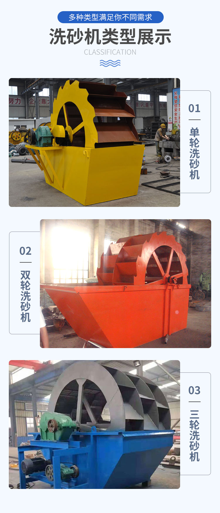 輪斗洗砂機(jī)主要分為單輪斗洗砂機(jī)、雙輪斗洗砂機(jī)、三輪斗洗砂機(jī);用于建筑砂石料等的洗選脫水,是配合制砂機(jī)使用的一種水洗式制砂的必備設(shè)備??梢韵慈ブ粕皺C(jī)制出的混合砂子微量的石粉和雜質(zhì),從而提高砂子的質(zhì)量;該機(jī)洗凈度高、結(jié)構(gòu)合理、處理量大、功耗小、砂子流失少(洗砂過程中)。