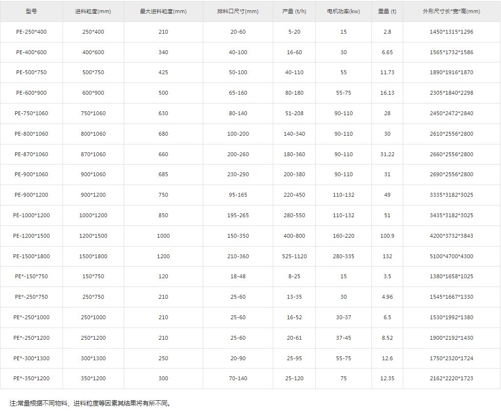 顎破具有破碎比大、產(chǎn)品粒度均勻、結(jié)構(gòu)簡(jiǎn)單、工作可靠、維修簡(jiǎn)便、運(yùn)營(yíng)費(fèi)用經(jīng)濟(jì)等特點(diǎn)。鄂式破碎機(jī)廣泛運(yùn)用于礦山、冶煉、建材、公路、鐵路、水利和化學(xué)工業(yè)等眾多部門(mén),破碎抗壓強(qiáng)度不超過(guò)320兆帕的各種物料,是初級(jí)破碎專業(yè)設(shè)備。
