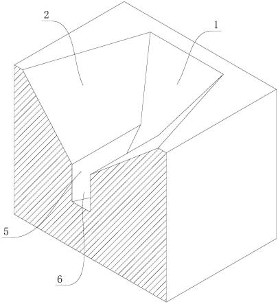 鄂破重型板式喂料機(jī)入料倉,包括擋車墻,擋車墻的兩側(cè)設(shè)有側(cè)翼板,側(cè)翼板的底部設(shè)有導(dǎo)料槽,導(dǎo)料槽的兩側(cè)沿垂直方向設(shè)有側(cè)立板,側(cè)立板的頂端與側(cè)翼板的底端連接,擋車墻延伸到導(dǎo)料槽內(nèi),擋車墻的底部設(shè)有收納槽,收納槽位于導(dǎo)料槽的延伸方向上。
