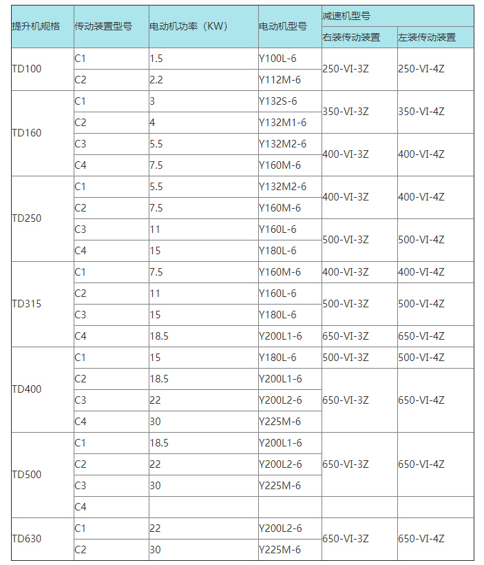 TD型斗式提升機(jī)(皮帶式斗式提升機(jī))由運(yùn)行部分(料斗與牽引膠帶),帶有傳動(dòng)滾筒的上部區(qū)段,帶有拉緊滾筒的下部區(qū)段,中間機(jī)殼,驅(qū)動(dòng)裝置,逆止制動(dòng)裝置等組成,適用于向上輸送松散密度ρ<1.5t/m3粉狀、粒狀和小塊狀的無磨琢性和半磨琢性散狀物料,如煤、砂、焦末、水泥、碎礦石等。 TD提升機(jī)結(jié)構(gòu)形式為:TD型斗式提升機(jī)的傳動(dòng)裝置有兩種形式分別配有YZ型減速器ZQ(或YY)型減速器。YZ型軸減速器直接裝在主軸軸頭上,省去了傳動(dòng)平臺(tái)、聯(lián)軸器等,使結(jié)構(gòu)緊湊、重量輕,而且其內(nèi)部帶有異型輥逆止器,逆止可靠。該減速器噪音低,運(yùn)轉(zhuǎn)平穩(wěn),并隨主軸浮動(dòng),可消除安裝應(yīng)力。
