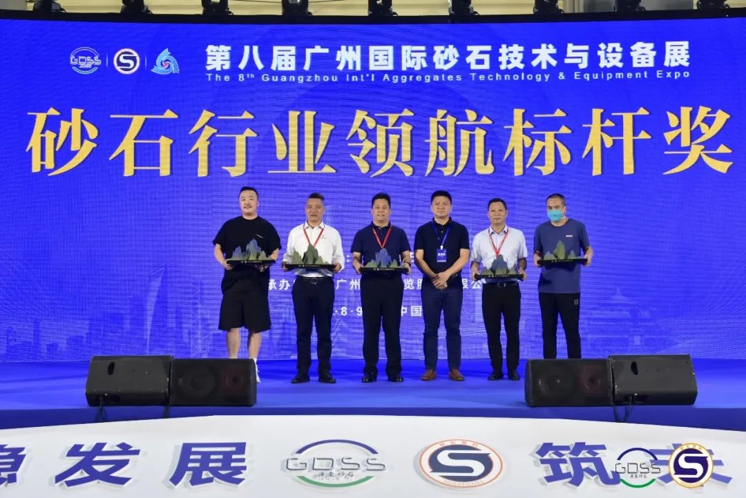 在這共同度過的八屆砂石展里,這些參展商在展會現(xiàn)場提交了成交額17.72億元的滿分成績單,為表達(dá)對眾多設(shè)備企業(yè)的支持,廣東省砂石分會會長賴志光、監(jiān)事長魏泓方為巨和工程、同力重工、廣東譽華、順達(dá)重礦、磊蒙集團(tuán)、宇通礦卡、韶瑞重工、龍粵環(huán)保、浙礦重工、華寶礦機(jī)、鞍重等企業(yè)頒發(fā)了砂石行業(yè)領(lǐng)航標(biāo)桿獎。