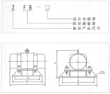 ZFB倉(cāng)壁振動(dòng)器外形尺寸表