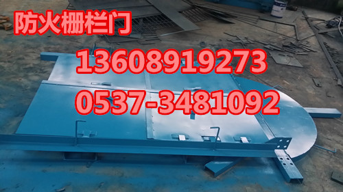 防火柵欄兩用門由門框、門扇、閉鎖裝置等部件組成。防火柵欄門門框為角鋼豎框和有半圓封板的槽鋼上橫梁聯(lián)接而成,無下門框。防火柵欄門門扇為角鋼、鋼板、鋼板網(wǎng)組焊而成,鋼板網(wǎng)對應(yīng)安裝鋼板門扇。防火柵欄門閉鎖裝置采用里外轉(zhuǎn)動手柄和卡子。