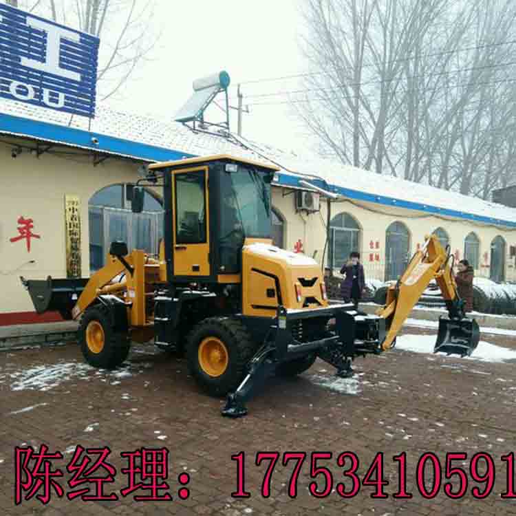 小型挖掘裝載機特點,保整原裝載功能不受影響,挖掘部分折疊做配重,挖掘時裝載部分做底盤支撐,兩部分互不影響,還可以互補。