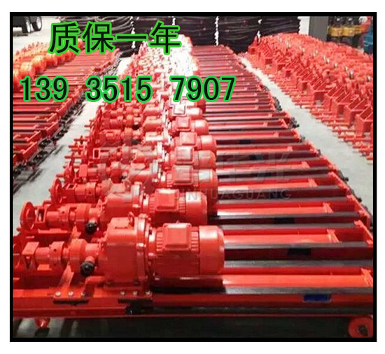 開孔時,先起動電動機,待轉運正常后扳動操縱器的推進手把。使其得到適當?shù)耐七M力,然后再扳動控制沖擊器的手把到工作位置。鑿巖工作以后,可以打開水閥,使氣水混合物保持在有適當?shù)谋壤?。進行正常的鑿巖工作。當推進工作使缷桿器移動到與托釬器相碰時,為鉆完一根鉆桿。要停止電動機運轉和停止給沖擊器送氣、送水、把叉子插到托釬器的鉆桿槽中,使電機反轉滑板后退,使接頭與鉆桿脫開,再接第二根鉆桿,按此下你循環(huán)連續(xù)工作。