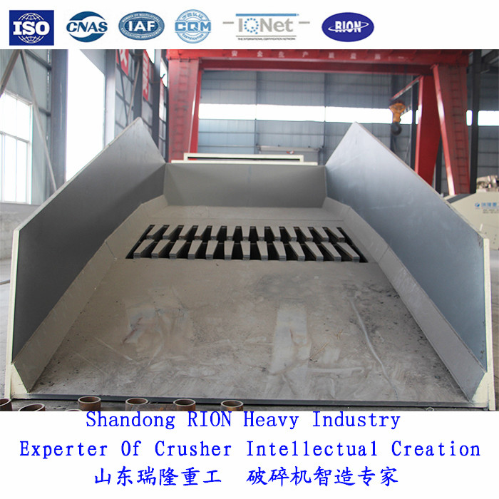 2、獨特柵條耐磨設計,既防止物料堵塞又將小料(沙土等)篩出,從而增加產量。