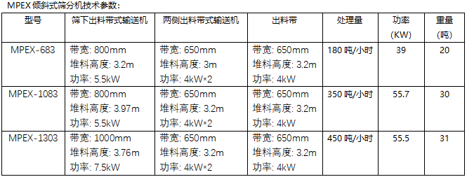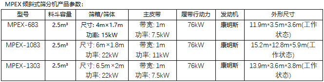 派克斯MPEX移動傾斜式篩分設備技術(shù)參數(shù):