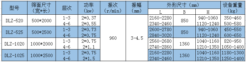石英砂大小篩分推薦直線振動篩技術(shù)參數(shù):