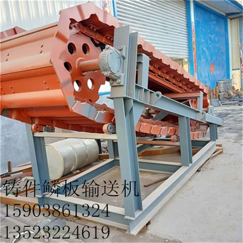 鑄件鱗板輸送機鐵礦石的板式喂料機產(chǎn)品介紹鱗板輸送機是由一系列支承在滾子鏈上相互搭接的金屬磷板形成以個連續(xù)移動的工作面來載運散裝固體物料的輸送設(shè)備。 磷板輸送機有水平型、傾斜型、水平傾斜型三種機型,其工作原理基本相同,物料的移動是靠磷板載運而形成。鱗板輸送機機構(gòu)簡單、適用范圍廣、輸送能力搭、運行阻力小、安裝維修方便、使用壽命長。它不但能水平輸送,也能傾斜輸送;能多點加料,設(shè)備工藝布置靈活。