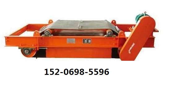 設備運行時輸送帶上的物料在經(jīng)過除鐵器下方時,物料中的鐵磁性物質(zhì)被吸引并被吸附至除鐵器皮帶上,由于電機帶動皮帶轉(zhuǎn)動,鐵磁性物質(zhì)由于摩擦力和擋板的作用隨之帶動,當被帶動出吸鐵區(qū)域時,由于自身重力作用和自身慣性速度,被吸出的鐵磁性物質(zhì)就被帶出落下至左邊輸送帶上,較后被輸送集中,完成自動卸鐵過程。
