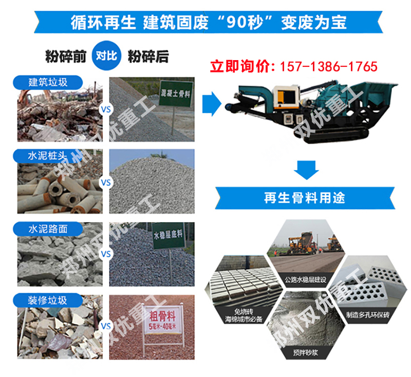 建筑垃圾如何變身有用資源?主要在于使用的建筑垃圾處理設(shè)備——移動(dòng)破碎站。這套由鄭州雙優(yōu)實(shí)力打造的建筑垃圾處理設(shè)備---移動(dòng)破碎站,有著長(zhǎng)長(zhǎng)的“手臂”和大的“嘴巴”,能夠不斷地將一塊塊建筑垃圾“吞”進(jìn)肚子里。經(jīng)過破碎機(jī)這個(gè)強(qiáng)大的“內(nèi)臟”進(jìn)行消化吸收,兩三分鐘內(nèi),四種大小不同的再生骨料就從設(shè)備兩旁的皮帶機(jī)上“吐”了出來。