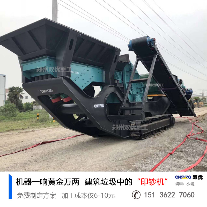 雙優(yōu)生產(chǎn)的時(shí)產(chǎn)260t建筑垃圾粉碎站也叫新型移動(dòng)式建筑垃圾破碎站,是根據(jù)環(huán)境保護(hù)研發(fā)出的新成果,自帶有智能抑塵工藝,能有效減少塵土飛揚(yáng),配置重型履帶底盤,穩(wěn)定行走,自由轉(zhuǎn)場,不需要對(duì)建筑垃圾進(jìn)行轉(zhuǎn)運(yùn),配置的4層篩子能夠?qū)⑵扑楹蟮奈锪虾Y分成4種不同細(xì)度的骨料,用于各種基礎(chǔ)建設(shè)中或生產(chǎn)免燒磚等。