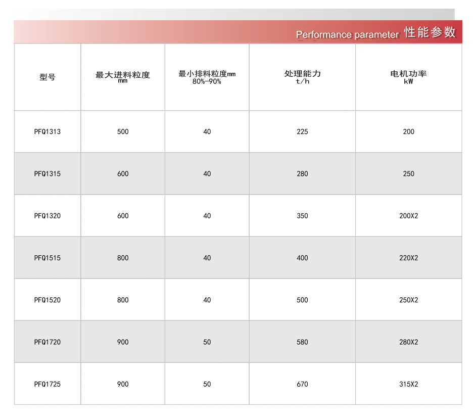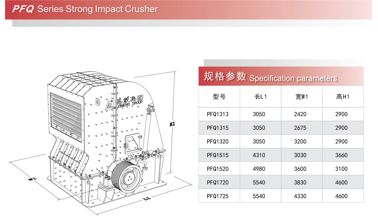 ● 該產(chǎn)品適用于抗壓強(qiáng)度不超過(guò)250MPA的各種物料的粗、中、細(xì)碎作業(yè),大型機(jī)型還有板錘更換起吊推薦工具供用戶選配。