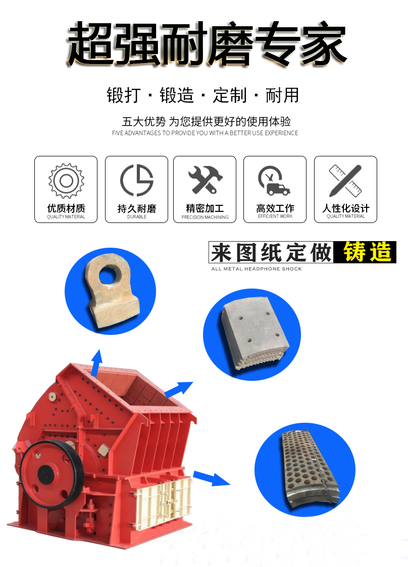 【主要材質(zhì)】:高錳鋼、變質(zhì)高錳鋼、超高錳鋼、改性高錳鋼、合金鋼、雙金屬?gòu)?fù)合、復(fù)合材料、高鉻材料、超高鉻鑄鐵、多元合金鋼、高低鉻鑄鐵、高錳鋼