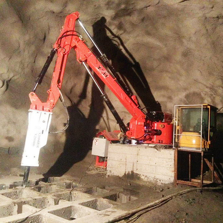 元征行直營(yíng)固定式液壓破碎錘是集機(jī)、電、液于一體的大功率破碎、拆除作業(yè)礦山設(shè)備。固定式破碎錘主要由4個(gè)大部分組成:液壓破碎錘(破碎巖石)、大小臂作業(yè)系統(tǒng)(斗桿)、液壓油站(動(dòng)力來(lái)源)以及控制器(操作系統(tǒng))。本產(chǎn)品為固定式電動(dòng)全液壓破碎機(jī),主要用于:礦山、采石場(chǎng),砂石骨料場(chǎng)、冶金鑄造廠、水泥廠、化工廠等露天地上施工環(huán)境或地下礦井溜井機(jī)口和格篩處,對(duì)大塊礦石進(jìn)行二次免爆破碎,以便運(yùn)輸及提升。且設(shè)備已通過(guò)歐盟認(rèn)證、ISO9001質(zhì)量認(rèn)證,質(zhì)量有保證。機(jī)器可遠(yuǎn)程操作,可以使用遠(yuǎn)程操作臺(tái),遙控器進(jìn)行遠(yuǎn)程操控,這也可以有效的保證操作人員的安全。機(jī)械操作簡(jiǎn)單易學(xué),降低了操作難度,同時(shí)也避免了因操作錯(cuò)誤而造成的不可逆的影響。