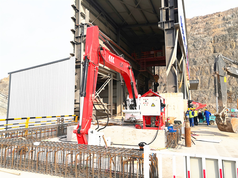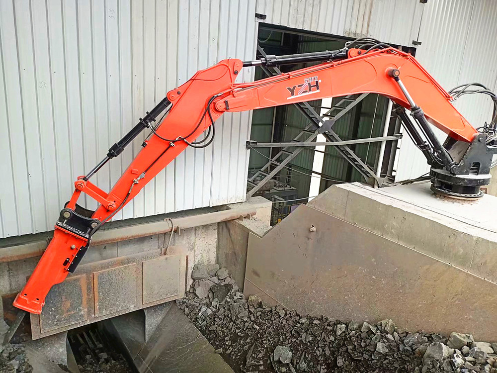 元征行生產(chǎn)礦用擺動(dòng)式碎石機(jī)又被叫做料口碎石機(jī)械手,是集機(jī)、電、液于一體的大功率破碎、拆除作業(yè)礦山設(shè)備??晒潭ㄔ诹蟼}一側(cè),既能破碎料倉、給料機(jī)及機(jī)口處大的石料,又能替代危險(xiǎn)性高的人工手動(dòng)清理,可以使生產(chǎn)順暢,是輔助破碎機(jī)料口礦石破碎給料的理想設(shè)備。