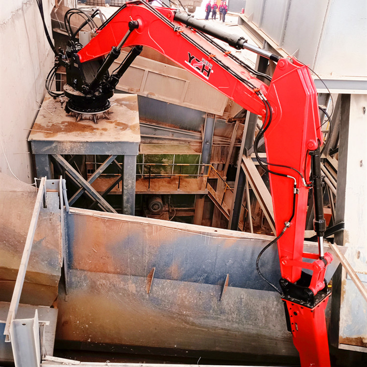 元征行生產(chǎn)金礦格篩破碎機被叫做料口碎石機械手,是集機、電、液于一體的大功率破碎、拆除作業(yè)礦山設備??晒潭ㄔ诹蟼}一側,既能破碎料倉、給料機及機口處大的石料,又能替代危險性高的人工手動清理,可以使生產(chǎn)順暢,是輔助破碎機料口礦石破碎給料的理想設備。