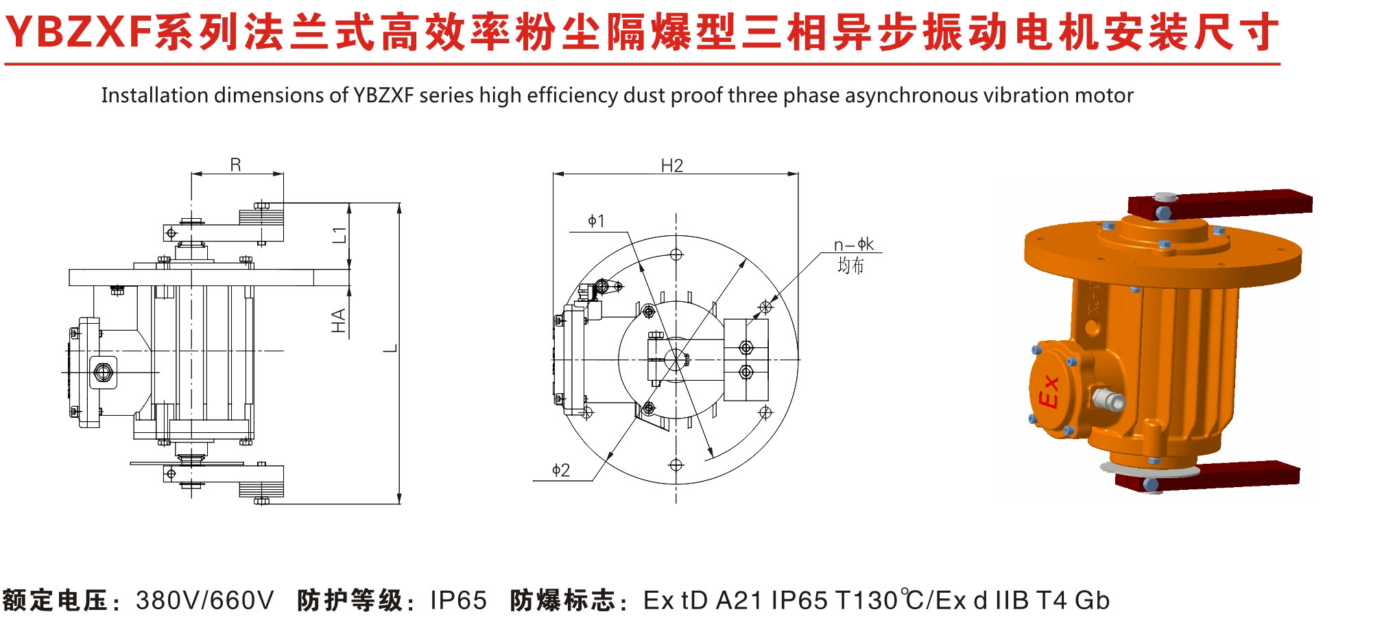 防爆振動電機YBZXF-5-4功率0.25kW轉速:1410rpm,新鄉(xiāng)濱河電機廠家制造經過南陽防爆所檢驗合格,放心使用。防護等級IP65,是氣體粉塵混合防爆振動電機。