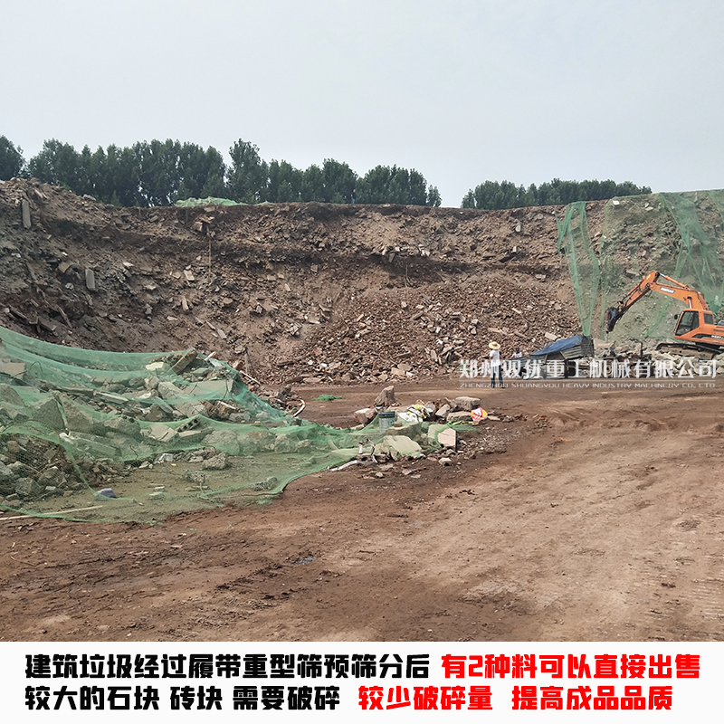 建筑垃圾篩一篩就能得到2種可直接使用的成品料,小時(shí)生產(chǎn)量可達(dá)500噸,這就是雙優(yōu)重工移動(dòng)土石分離機(jī)。