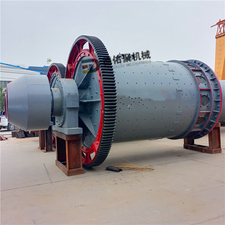 傳動(dòng)機(jī)構(gòu)使具有一定徑長比的磨機(jī)筒體以一定的轉(zhuǎn)速轉(zhuǎn)動(dòng)。物料由給料端給入磨機(jī)。筒體的轉(zhuǎn)動(dòng)促使鋼球做瀉落運(yùn)動(dòng)或拋落運(yùn)動(dòng),物料受到鋼球的和物料的沖擊研磨而粉碎。物料在不斷粉碎的同時(shí)向著排料端移動(dòng)。磨細(xì)的顆粒隨礦漿通過格子板進(jìn)入扇形室,隨著磨機(jī)的轉(zhuǎn)動(dòng),扇形室內(nèi)的礦漿被提升到一定的高度,然后沿壁流入排料的中空軸頸排出。粗顆粒則被格子板阻隔在磨機(jī)筒體內(nèi)部繼續(xù)研磨。筒體外鑲嵌有大齒圈,通過與大齒圈嚙合的小齒輪帶動(dòng)筒體轉(zhuǎn)動(dòng)。在磨機(jī)的筒體內(nèi)鑲有耐磨襯板,磨機(jī)轉(zhuǎn)動(dòng)時(shí)襯板把鋼球帶到一定的高度,利用鋼球下落時(shí)的沖擊來完成粉磨。