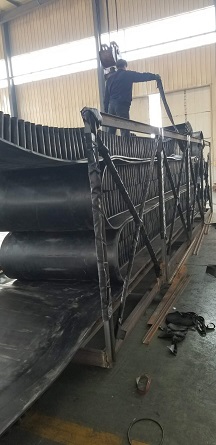 大傾角耐熱擋邊帶, 是由基帶、擋邊、橫隔板3部分組成。擋邊起防止物料測滑撒落的作用。為便于繞過滾筒,檔邊設(shè)計(jì)成波紋狀;橫隔板的作用是承托物料,為了實(shí)現(xiàn)大傾角輸送,采用T型TC型。檔邊和橫隔板是用二次硫化的方法與基帶連接的,具有很高的連接強(qiáng)度。用于輸送易散落的粉狀、粒狀、小塊狀、糊狀及液態(tài)狀物料。其特點(diǎn):適用于傾角0°~90°散裝物料的輸送;具有使用范圍廣、占地面積小、無轉(zhuǎn)運(yùn)點(diǎn)、減少土建投資、維護(hù)費(fèi)用低、維修容易輸送量大連續(xù)化、高效率、大傾角運(yùn)輸,操作安全,使用簡便,,運(yùn)費(fèi)低廉,并能縮短運(yùn)輸距離,降低工程造價(jià),節(jié)省人力物力等特點(diǎn);解決了普通帶和花紋帶所不能達(dá)到的輸送角度;還可根據(jù)使用環(huán)境,設(shè)計(jì)成完整、獨(dú)立的輸送系統(tǒng),避免了間斷輸送和復(fù)雜輸送的提升系統(tǒng)??裳厮?、傾斜、垂直和變角方向輸送各種散裝物料,從煤、礦石、沙子到化肥和糧食等。物料粒度不限,可從很小的粒度到400mm的大粒度,輸送量可從1立方米/小時(shí)到6000立方米/小時(shí)。