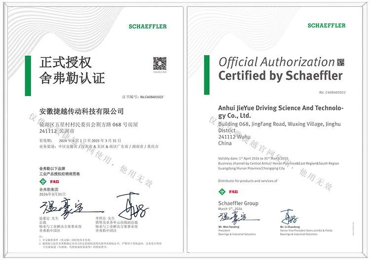 江蘇捷越貿(mào)易有限公司是安徽捷越傳動科技有限公司的下屬子公司,安徽捷越傳動科技有限公司作為一級授權(quán)經(jīng)銷商,多年來一直專注FAG/INA軸承的銷售與服務(wù),主營立磨軸承、減速機(jī)軸承、輥壓機(jī)軸承、回轉(zhuǎn)窯軸承、破碎機(jī)軸承等FAG/INA軸承。我們的宗旨是為員工和客戶提供超預(yù)期的滿意和服務(wù),在長期跟隨企業(yè)快速發(fā)展時,不僅收獲財富與成長,也收獲溫馨和快樂。