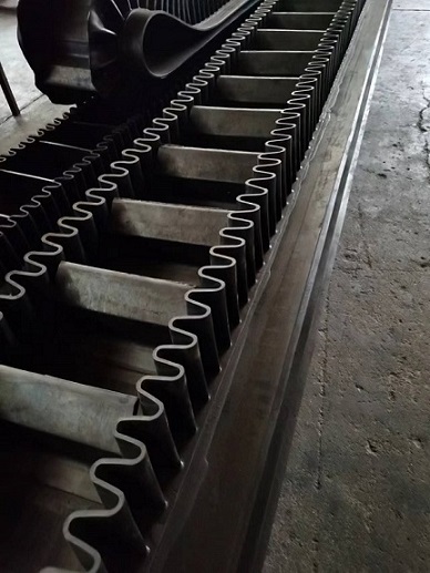 上料機(jī)擋邊輸送帶, 是由基帶、擋邊、橫隔板3部分組成。擋邊起防止物料測(cè)滑撒落的作用。為便于繞過(guò)滾筒,檔邊設(shè)計(jì)成波紋狀;橫隔板的作用是承托物料,為了實(shí)現(xiàn)大傾角輸送,采用T型TC型。檔邊和橫隔板是用二次硫化的方法與基帶連接的,具有很高的連接強(qiáng)度。用于輸送易散落的粉狀、粒狀、小塊狀、糊狀及液態(tài)狀物料。其特點(diǎn):適用于傾角0°~90°散裝物料的輸送;具有使用范圍廣、占地面積小、無(wú)轉(zhuǎn)運(yùn)點(diǎn)、減少土建投資、維護(hù)費(fèi)用低、維修容易輸送量大連續(xù)化、高效率、大傾角運(yùn)輸,操作安全,使用簡(jiǎn)便,,運(yùn)費(fèi)低廉,并能縮短運(yùn)輸距離,降低工程造價(jià),節(jié)省人力物力等特點(diǎn);解決了普通帶和花紋帶所不能達(dá)到的輸送角度;還可根據(jù)使用環(huán)境,設(shè)計(jì)成完整、獨(dú)立的輸送系統(tǒng),避免了間斷輸送和復(fù)雜輸送的提升系統(tǒng)。可沿水平、傾斜、垂直和變角方向輸送各種散裝物料,從煤、礦石、沙子到化肥和糧食等。物料粒度不限,可從很小的粒度到400mm的大粒度,輸送量可從1立方米/小時(shí)到6000立方米/小時(shí)。