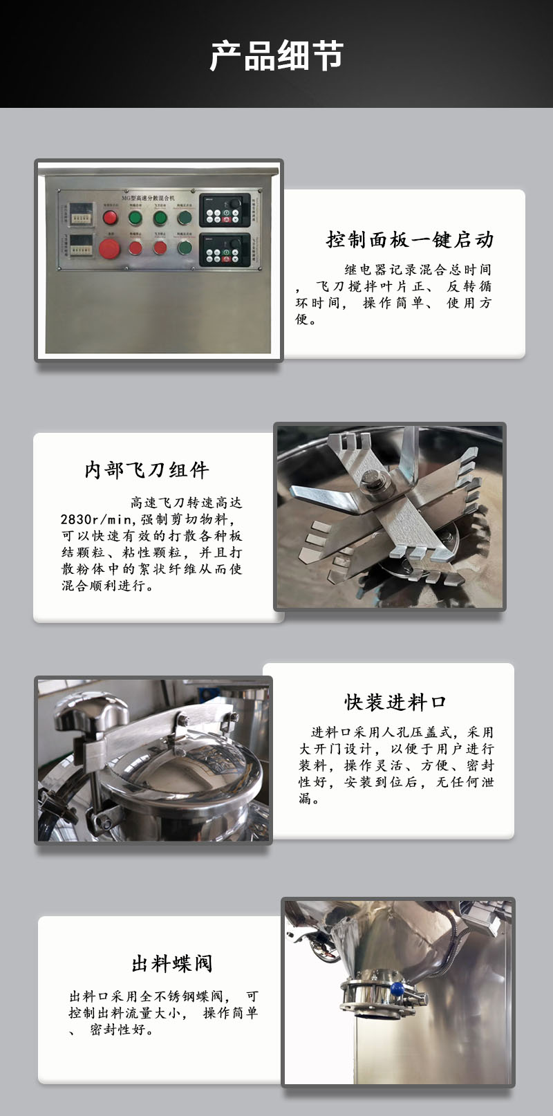 分散細(xì)度高:飛刀組件的剪切作用可將物料顆粒分散至微米級(jí),尤其適用于納米級(jí)材料等高精度混合需求。