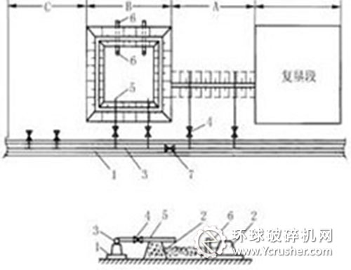 6-溢流管;7-閘閥;A-干燥段;B-筑壩段;C-準(zhǔn)備段。