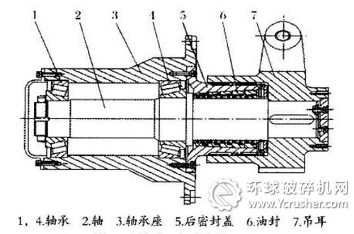 軸承珠架斷裂,珠子脫離軌道,嚴(yán)重時(shí)軸徑由Φ180磨損至Φ80左右與軸承座脫離。軸承體6內(nèi)孔磨損嚴(yán)重、軸承壓蓋8端面被軸磨穿。