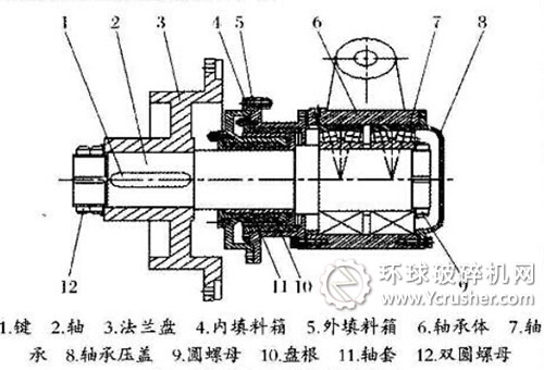 a、聯(lián)接組零件異常,雙圓螺母12松動(dòng)、法蘭盤3肉孔磨損、鍵槽磨損、鍵1磨損。