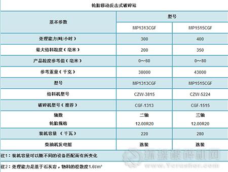 輪胎移動(dòng)式破碎站技術(shù)參數(shù):