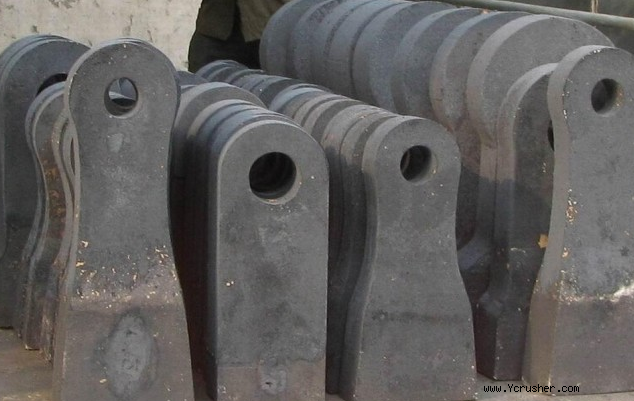 破碎機多采用單重50kg以下的錘頭,因為受沖擊力相對較小,普通高錳鋼加工硬化能力不能充分發(fā)揮,因而不耐磨,應(yīng)該選擇含碳量為上限的合金高錳鋼或中低碳合金鋼。