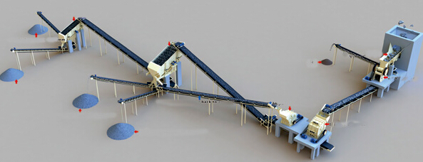 顎式破碎機進行頭道破碎,經(jīng)過破碎后的石灰?guī)r由輸送機輸入下一臺工序是,或先存放在一旁。