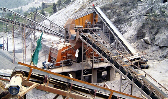 將大塊石灰?guī)r經(jīng)過給料設(shè)備(如振動給料機、給料機)均勻喂料,輸送到破碎設(shè)備內(nèi),一般采用