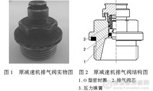 排氣閥,是減速機(jī)密閉油箱與外界進(jìn)行氣體交換的必經(jīng)屏障。巴潤(rùn)礦業(yè)分公司使用的是濕式永磁筒式磁選機(jī),由減速機(jī)進(jìn)行減速傳動(dòng),以達(dá)到磁滾筒所需的選別速度。由于磁選機(jī)減速機(jī)長(zhǎng)期處于選廠高溫、高濕、多塵的環(huán)境中,減速機(jī)排氣閥經(jīng)常發(fā)生被礦漿堵塞的情況,導(dǎo)致減速機(jī)在運(yùn)行過(guò)程中出現(xiàn)高溫、漏油現(xiàn)象,尤其是輸出端漏油較為嚴(yán)重,不僅造成污染、浪費(fèi),還嚴(yán)重影響磁選機(jī)的正常運(yùn)行,導(dǎo)致設(shè)備停產(chǎn)。