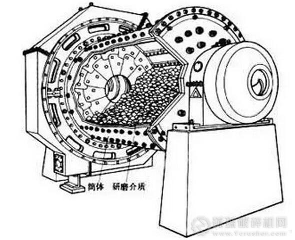 當(dāng)筒體轉(zhuǎn)速過高時,由于離心力的作用,研磨體“貼附”在筒體內(nèi)壁上與筒體一道做旋轉(zhuǎn)運動而不再拋落。在離心式運動中,研磨體不再對物料產(chǎn)生碰擊和研磨作用,物料當(dāng)然就不會被粉碎。
